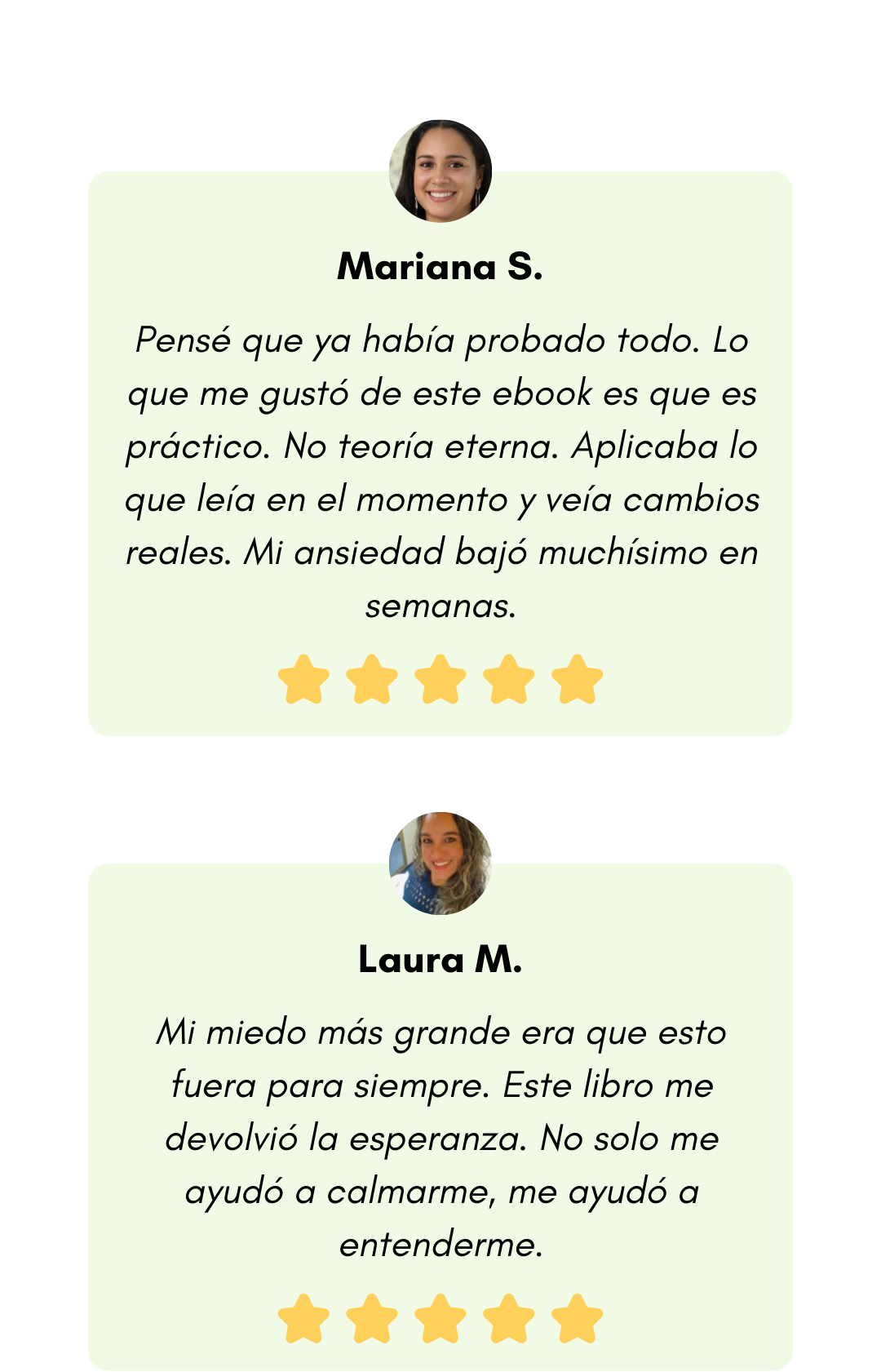 Estamos tan seguros de que este ebook va a ayudarte a transformar tu relación con tus pensamientos y recuperar la calma mental, que te damos 7 días completos para ponerlo a prueba.
