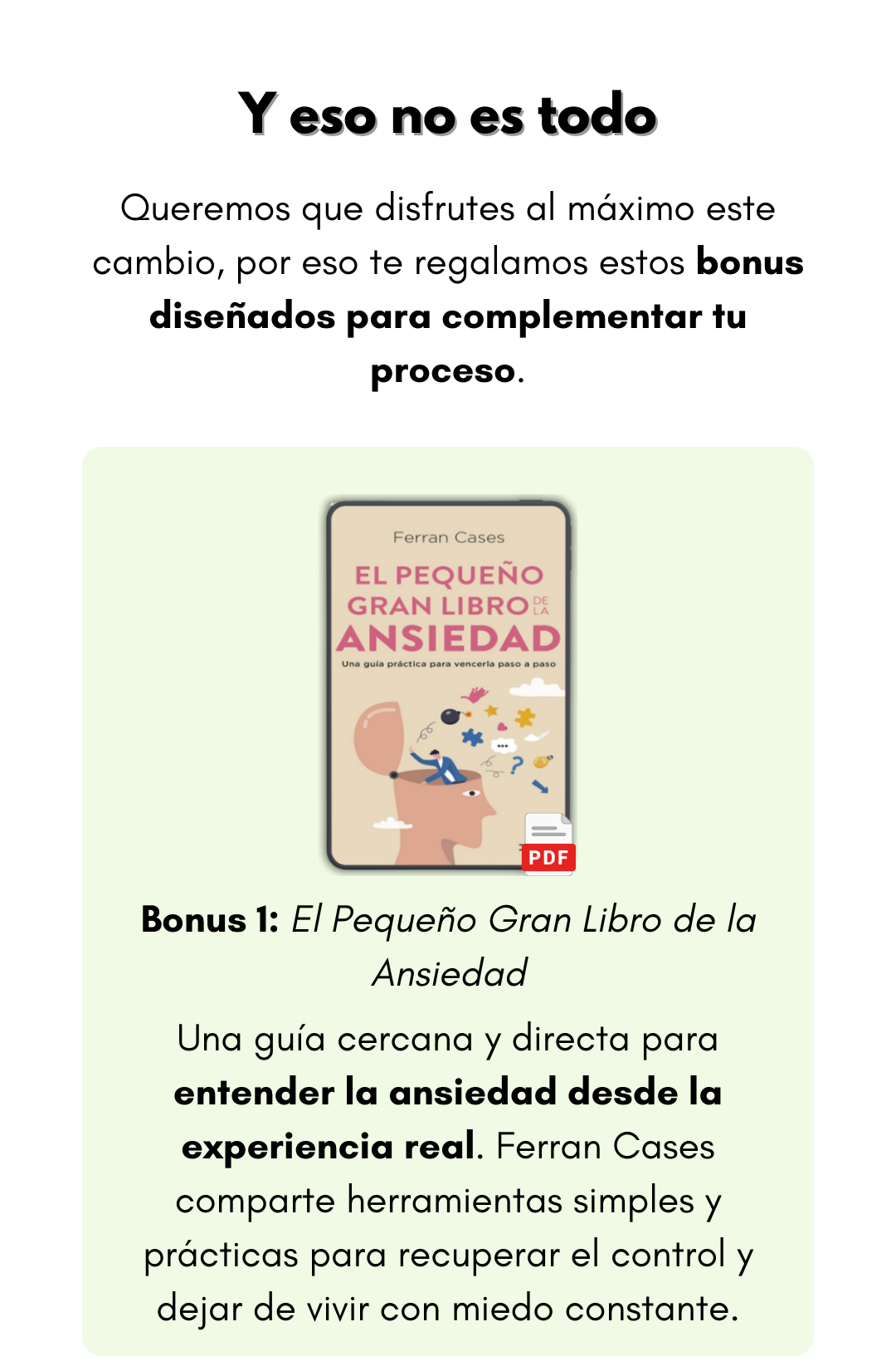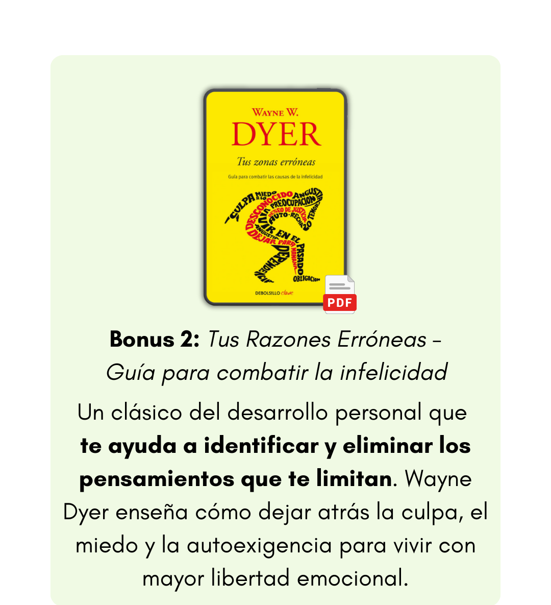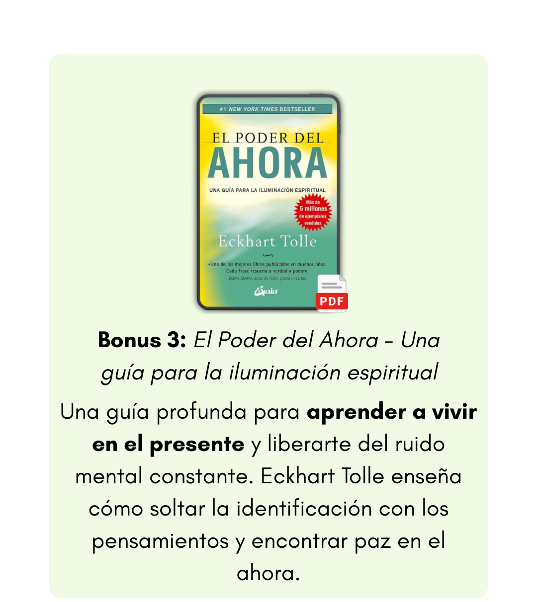 Es 100% práctico. Vas a encontrar ejercicios, ejemplos y herramientas listas para usar desde hoy mismo en tu vida diaria.